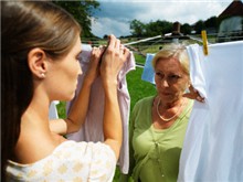 Khổ nhất là những buổi sáng sớm, chị Hạnh dậy chuẩn bị đi làm thì thấy mẹ chồng ôm chậu quần áo to đùng ra trước cổng giặt. Không đành, chị lại ngồi xuống vò quần áo cùng mẹ. Vò xong đống quần áo, chân tay rã rời, lại nhanh chóng tới chỗ làm cho kịp giờ. Nhưng vẫn chưa mệt bằng nhiều lần, buổi tối vợ chồng chị định đi nghỉ, thì mẹ chồng lại ở nhà dưới ôm quần áo đi giặt. Dù cụ chẳng nói lời nào, nhưng chị Hạnh cũng đành xuống nhà làm cùng mẹ. “Nói mãi cụ chẳng chịu nghe, quần áo của bé con nhà tôi thì nhiều, lại mùa mưa, giặt bằng máy, vắt khô sẽ nhanh hơn, nhưng cụ vẫn khăng khăng mẹ làm được, kệ mẹ. Nhiều lúc nghĩ vừa bực, vừa thương.”